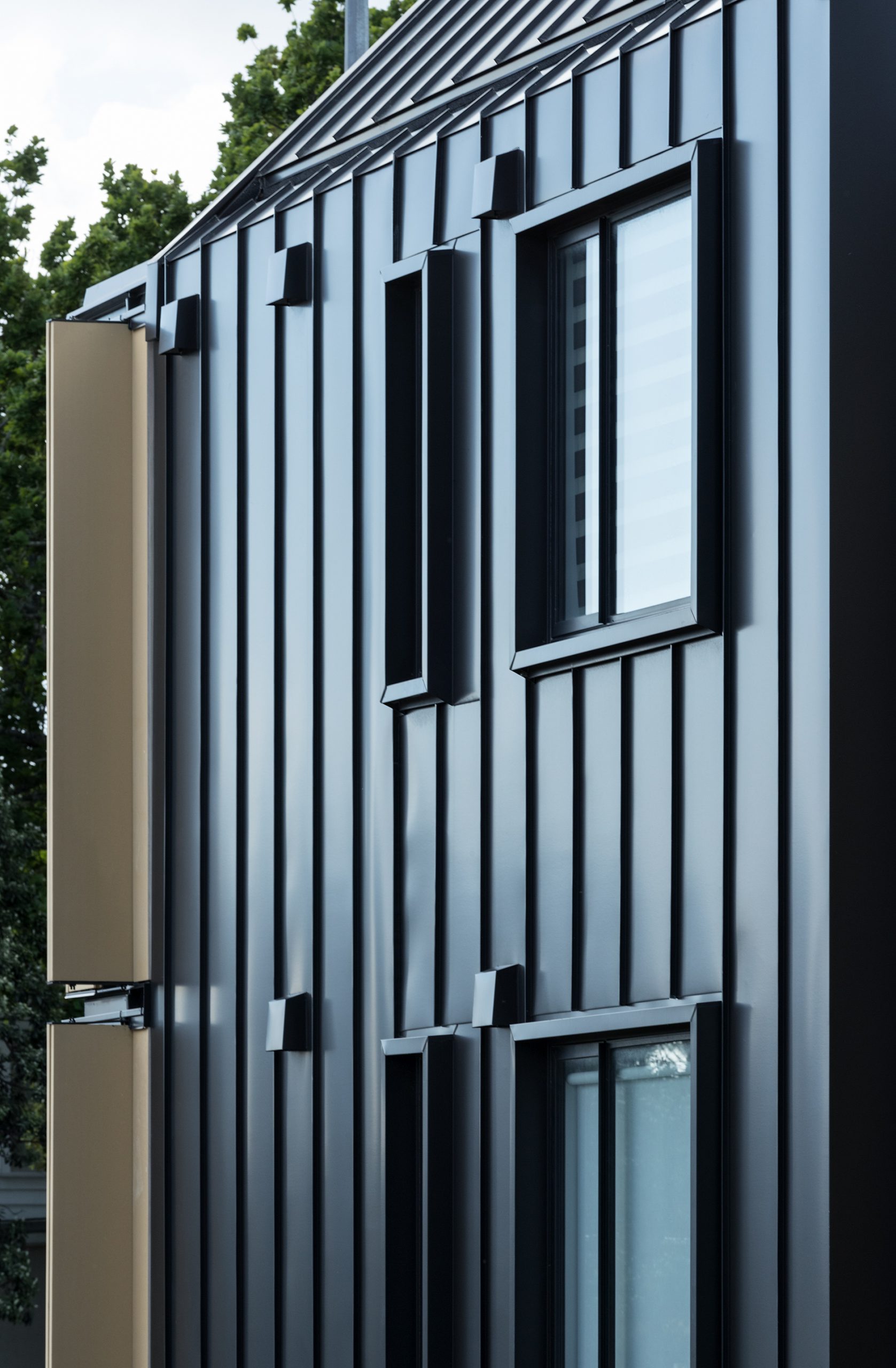 Originating in Europe this profile contributes to a pleasing wide pan tray and is available in a seam height of 25mm. The Angle Seam profile is fixed to a substrate with concealed clips. The angle seam may be completed in a range of materials including Copper, Zinc, pre-painted Aluminium and pre-painted steel.